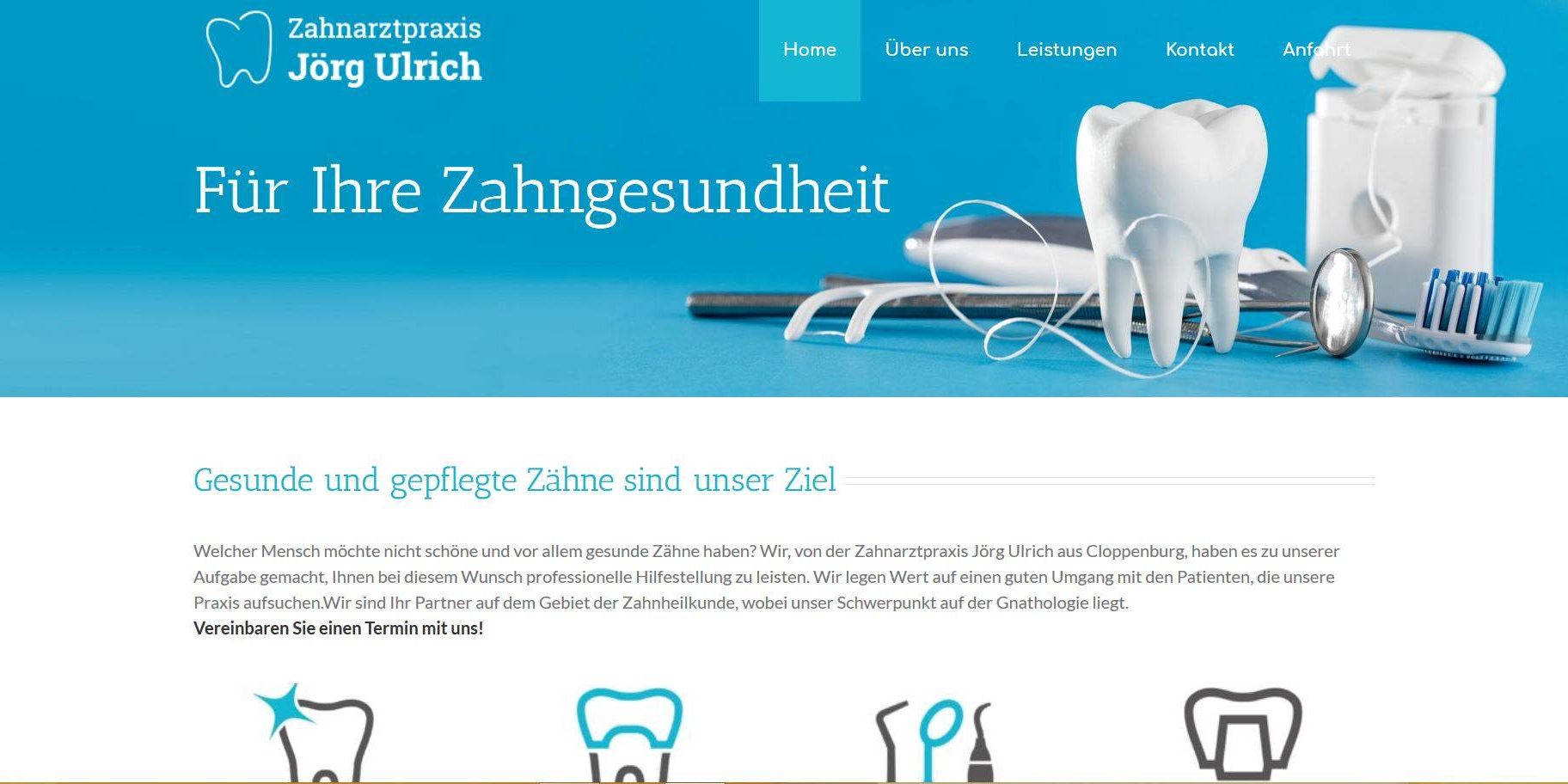 Nach einem ersten unverbindlichen Beratungsgespäch bekam ich vom Zahnarzt Jörg Ulrich aus Cloppenburg den Auftrag, die derzeitige Internetpräsenz durch ein Relaunch in ein modernes, freundliches Design zu überführen. Seit heute ist der Auftrag umgesetzt und die neuen Seiten sind online.